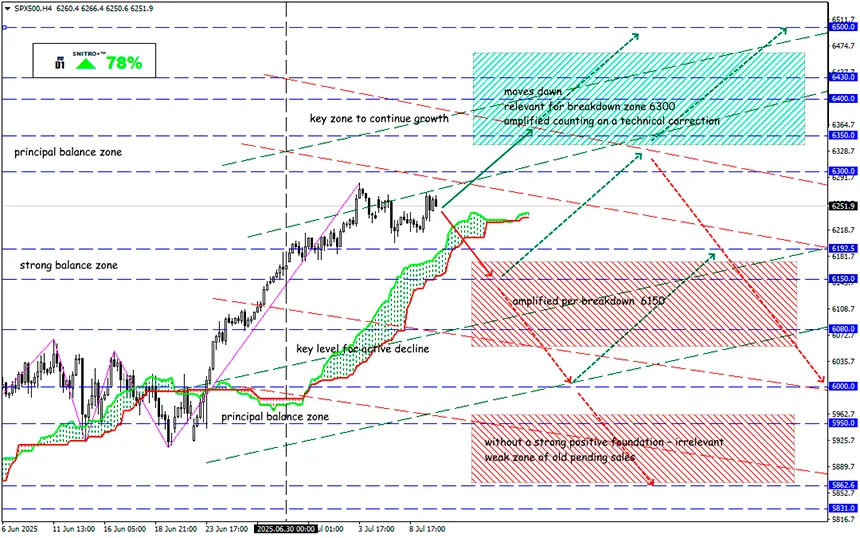 Currently, the S&P 500 is eager to break through the 6,300 mark, with only about 0.6% remaining. Traders are reluctant to lock in profits on long positions and are seeking positivity in any information. In reality, the market simply needs a minor correction to alleviate overbought conditions and continue its long-term growth.