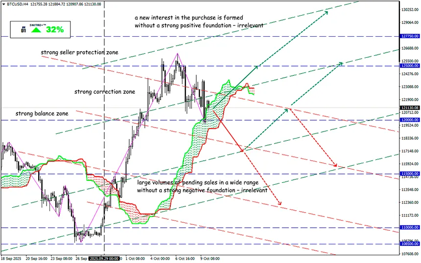 Sell: 120,000 (on a pullback after a retest of 123,500 level) ; target 116,500-116,000; StopLoss 121,000