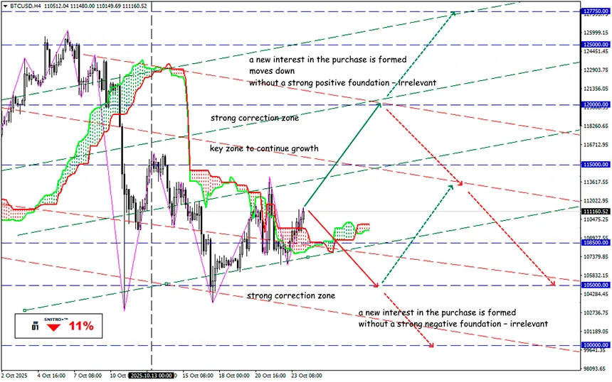في الوقت الحالي، يظل السيناريو الأساسي هو الحركة الجانبية، مع دعم رئيسي عند مستوى 108,500 دولار. سيتطلب السيناريو الصعودي اختراقًا فوق مستوى المقاومة بالقرب من 115,000 دولار، بينما يصبح السيناريو الهبوطي مرجحًا إذا تم كسر مستوى 108,500 دولار.