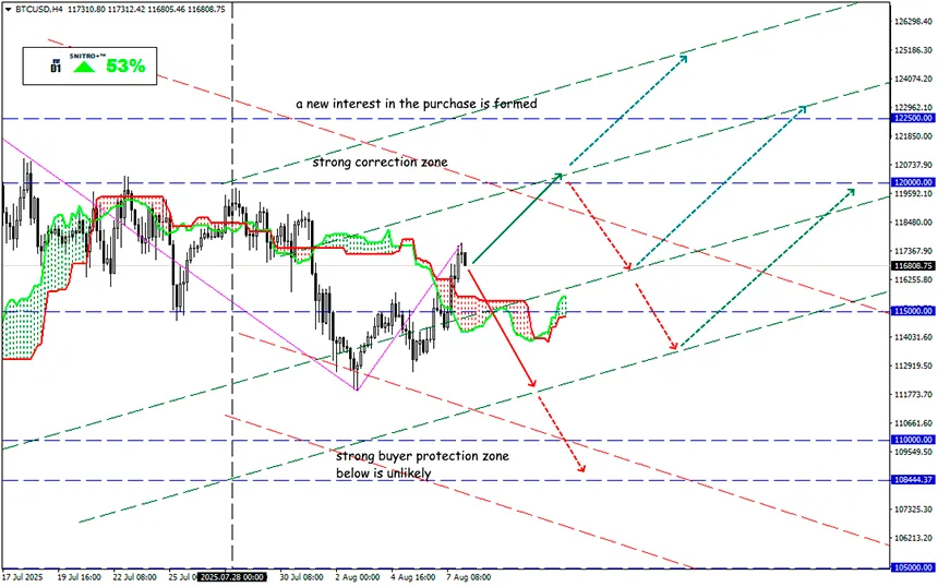 الشراء:117,500 (عند الانهيار بعد التصحيح); الهدف120,000-121,300; ستوب لوس116,800