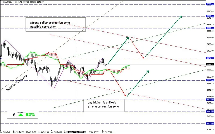 التلاعبات السياسية، الصراعات العسكرية المفتوحة، وضعف الأسهم يعيدان جذب المستثمرين نحو الملاذ الآمن. الذهب حالياً أقل نشاطاً من نظيره (الفضة)، لكنه لا يزال يحصل على دعم في فترات الانخفاض ويجمع اهتماماً تدريجياً للشراء الجديد – وقد تحدد بيانات التضخم الأمريكية الاتجاه حتى الأول من أغسطس.