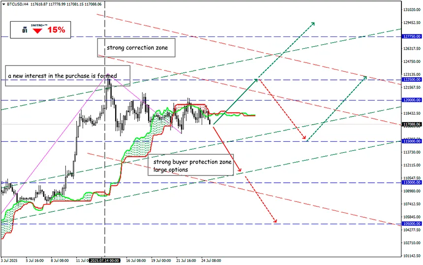 Venta: 115,000 (con una fuerte ruptura del nivel 116.000); objetivo 111,500; StopLoss 116,500