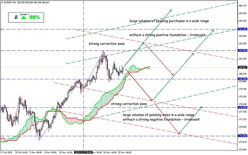 Para quienes evitan riesgos excesivos, recomendamos operar el euro mediante cruces principales — más estables, aunque hay que vigilar el factor del yen. Además, los dos últimos días de la semana llegarán con baja liquidez debido a la ausencia de capital estadounidense: los especuladores aprovecharán esta situación y el lunes podría abrir con niveles más favorables para el euro.